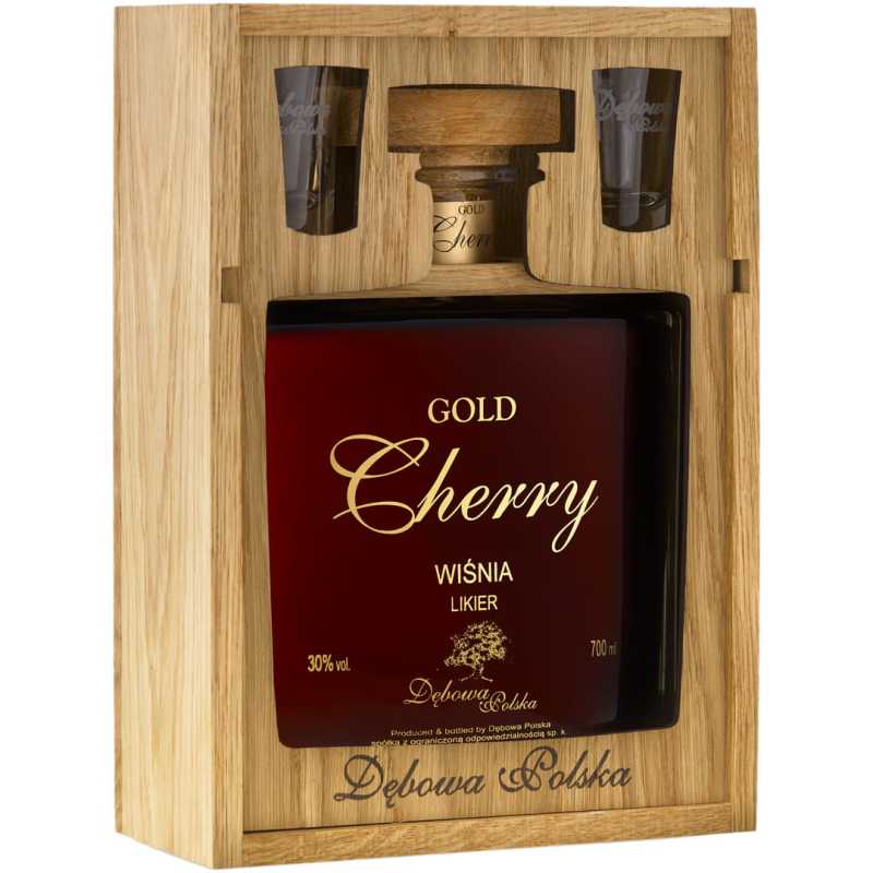 Dębowa Polska Cherry Gold Skrzynka Zasuwana Likier 0,7L 30% + 2 kieliszki